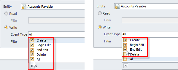 Note If you don't want users to delete entity records, don't select the Delete check box.