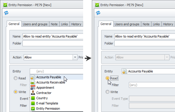 Tip If you want to allow users to change only particular properties of the given entity, you need to allow them to Begin Edit all properties and deny to End Edit all properties except for particular ones. For example, you can allow users to change task state only