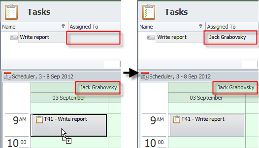 When you hold down the Shift key and drag a task from the Tasks view to the Scheduler pane, the task gets automatically assigned to the user whose calendar you drop the task to.