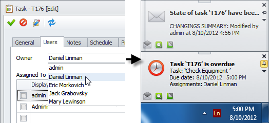 Note On the Users tab you can select the task Owner who will control task execution by getting notifications when task state is changed or task is overdue.