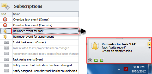 "Reminder" event includes two default subscriptions which remind users of tasks and appointments: