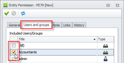 3. On the ribbon, in the Data group, click Add, and then in the Entity Permission dialog box, on the General tab, enter permission settings.