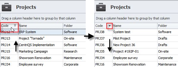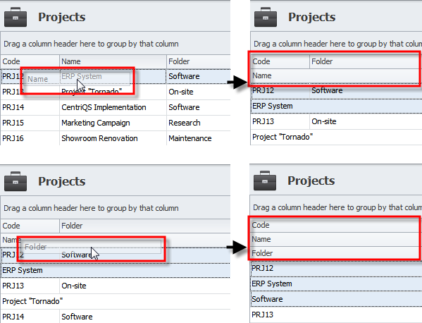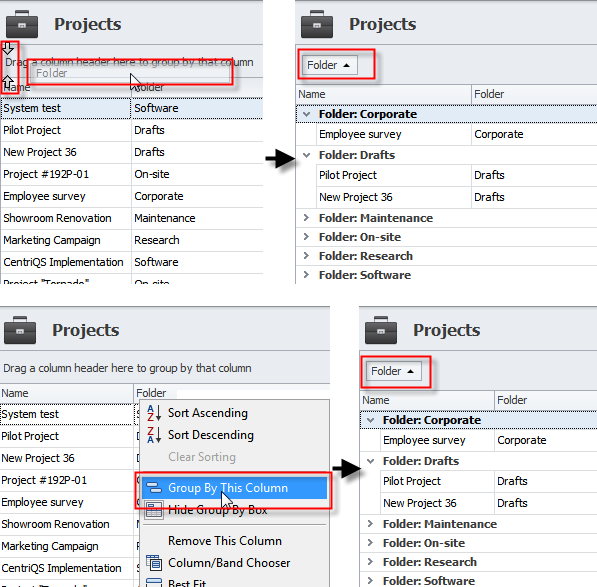 • Drag column header to the Group By Box bar, or right-click the column header and then click Group By This Column.