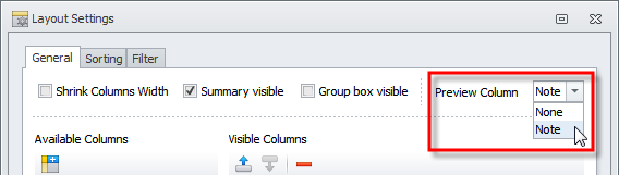 Note You can also click the required option that you want to show in the the Preview Column box on the General tab of the Layout Settings dialog box.