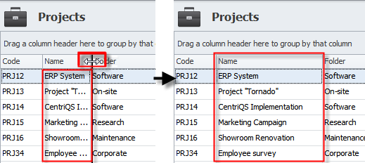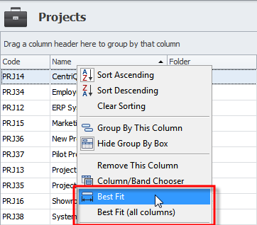• Right-click the column header and select Best Fit or Best Fit (All Columns).