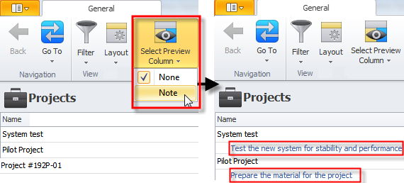 • On the ribbon, in the View group, click Select Preview Column, and then click the option you want to show.