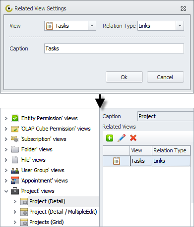 Note You can add Related View only if one entity relates to another entity by property or link.