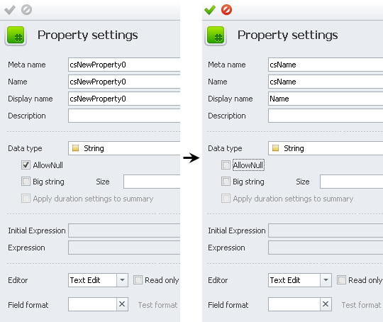 Important! If you clear AllowNull check box, this property field will be obligatory for filling.