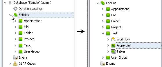 2. Click the right-pointing arrow next toEntities, then click the right-pointing arrow next to required entity.