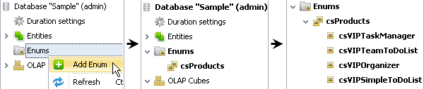 If entity property should contain an enumeration (for example, Priority levels, Issue types, Article categories, and other properties), create a database Enum…