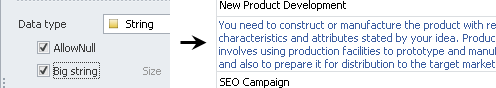 If entity property should contain an unlimited number of any symbols such as letters, numbers, special characters (for example, Notes, Comments, and other properties), click String in the Data type list, and then select the Big String check box.