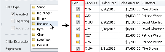 If entity property should contain a check box that defines whether the property value is true or false (for example, Paid, Approved, Fixed, and other properties), click Boolean in the Data type list.