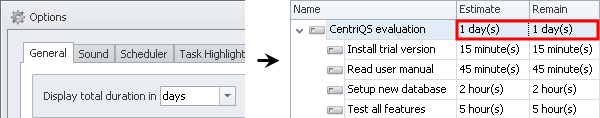 …and display total duration depending on Options settings (for example, task duration will be automatically calculated as summary duration of its subtasks).