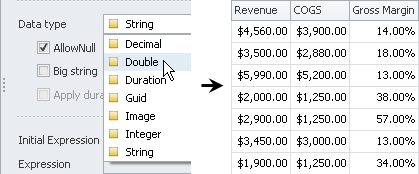 If entity property should contain a floating point number (for example, Cost, Weight, Size, Percent, and other properties), click Double in the Data type list.