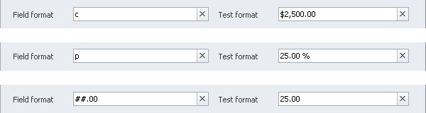 Tip You can use available formats of Double data type, such as c for Currency, p for Percentage.