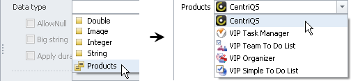 If entity property should refer to a default entity (for example, Task, Project, File, and other enities), click required default entity in the Data type list.