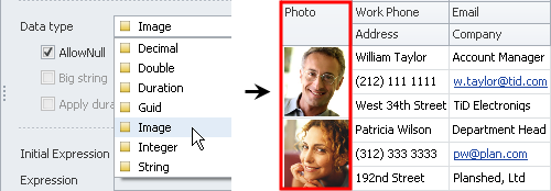 If entity property should be used to upload and display an image file (for example, Client Photo, Company Logo, Product Image, and other properties), click Image in the Data type list.