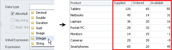 If entity property should contain positive or negative numbers (without fractions) or zero (for example, Quantity, Number of Parts, and other properties), click Integer in the Data type list.