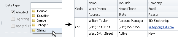 If entity property should contain any symbols such as letters, numbers, special characters (for example, Code, Name, Address, Phone, Email, and other properties), click String in the Data type list.