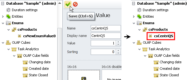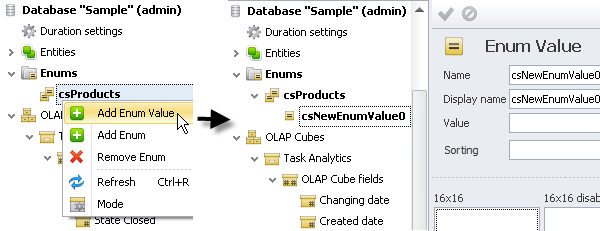 Tip By default, enum values are sorted the way they were entered. If you want to arrange your enum values in a different order, you need to use the Sorting box.