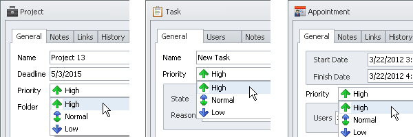 Note One enum can be used as a property of multiple entities within the same database. For example, enum Priority can be used as a property in such entities as Project, Task, Appointment.