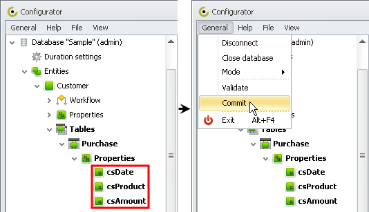 1. Log on to the database in Configurator.
