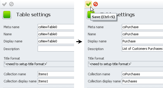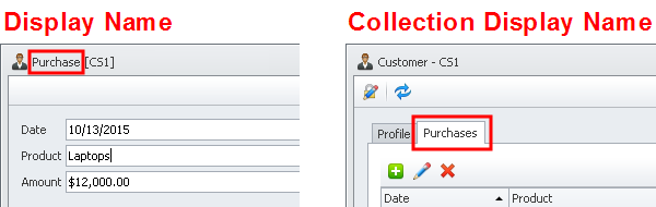 Note The Display Name is shown in the title of the table item, so you may want to have the display name in the singular, while the Collection display name can be shown in the title of the tab that contains the table, so you may want to have the collection display name in the plural.