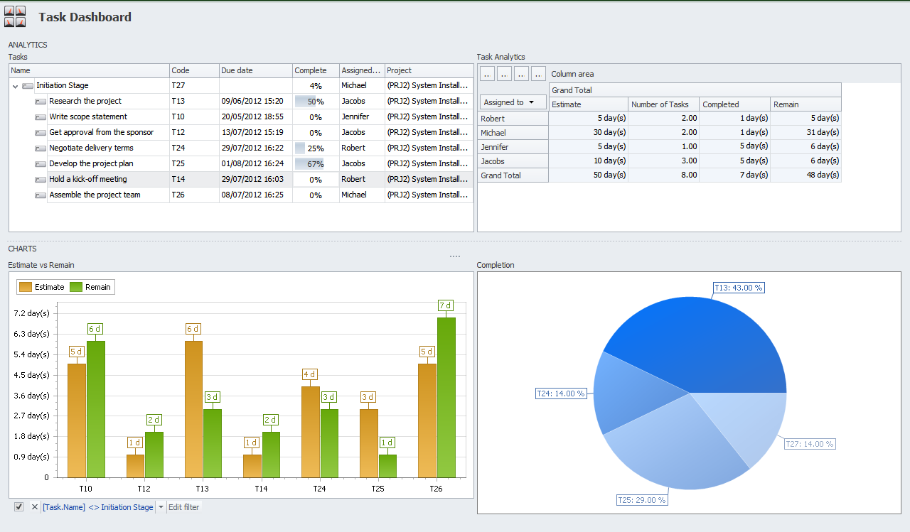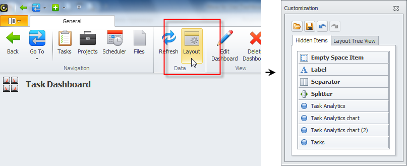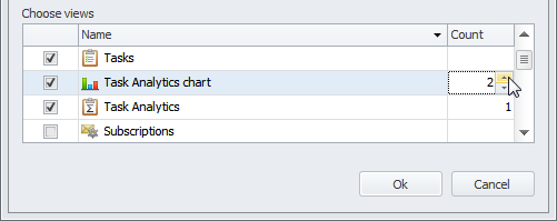 Dashboard view can contain multiple views. For example, task-related dashboard can show the Tasks view, the Task Analytics view, and the Task Analytics Charts view.