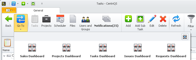 Note The new dashboard will become available in the list of views, when you click Go To on the ribbon.