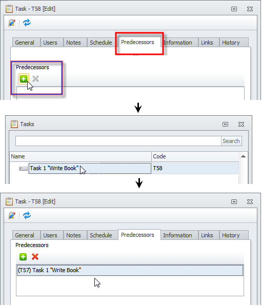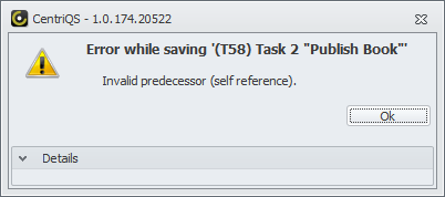 Note If you select the same task as predecessor for the same task, the following message will appear: