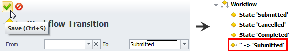 • Right-click Workflow, click Add Transition, click required states in the From and the To boxes, and then click Save.