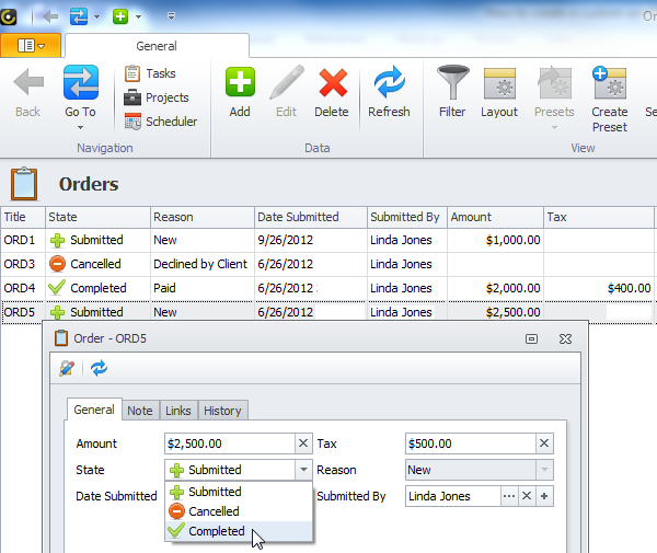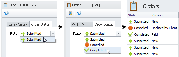 Note The State property and the Reason property will be appear in the main view and detail view of the entity.