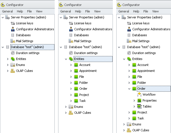 Entity workflow consists of States, Transitions, Reasons, and Actions.