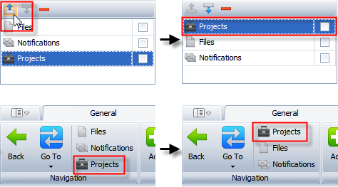 - Click the name of required view, and then click Move Up or Move Down in the toolbar of the right column.