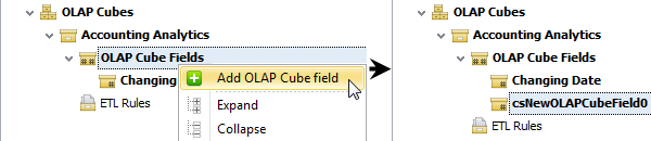 1. Click the right-pointing arrow next to the newly created OLAP cube, right-click OLAP Cube Fields, and then click Add OLAP Cube Field.