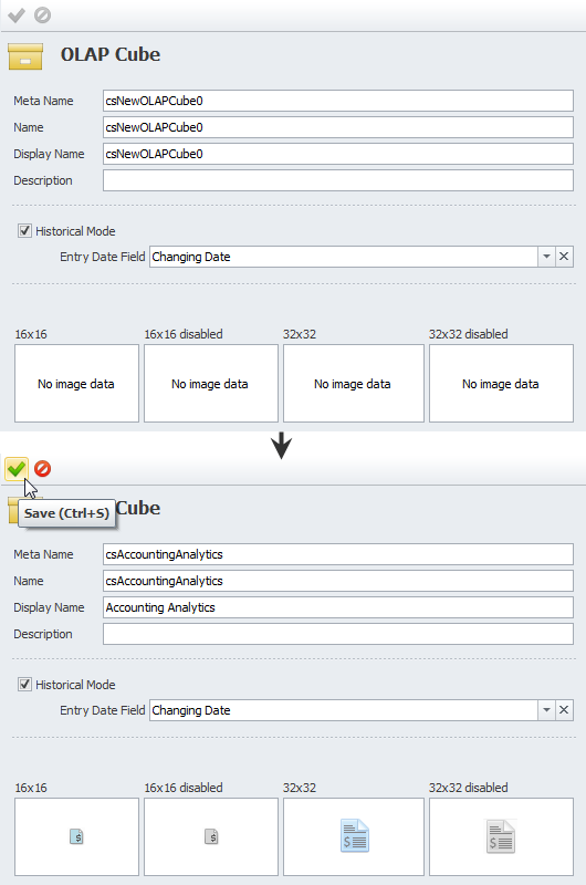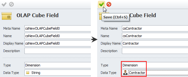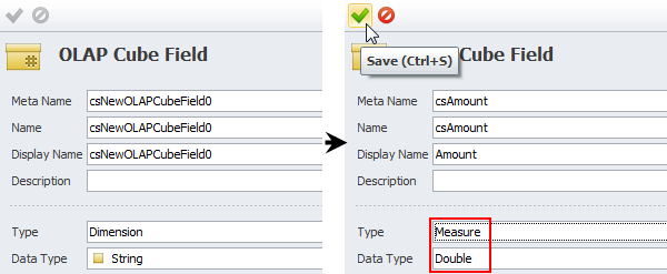 2. Enter OLAP cube field settings, and then click Save.