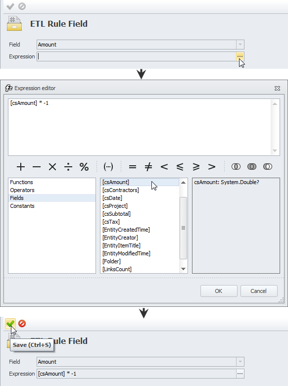 Tip In this example the amount of “Accounts Receivable” should remain positive, so the expression consists of the field “csAmount” only.