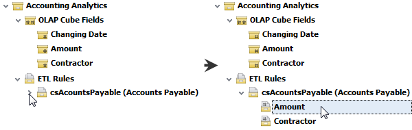 1. Click the right-pointing arrow next to required ETL rule, and then click required ETL rule field.