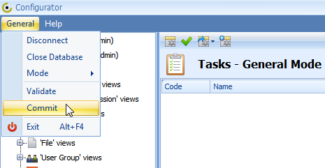 6. On the General menu, click Commit.