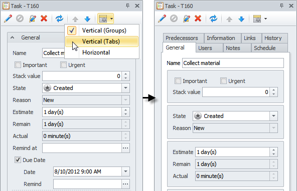 Note The Horizontal mode has default tabbed layout.