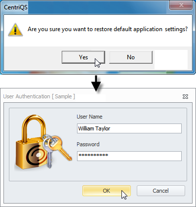 To restore CentriQS default settings on your computer for your user account