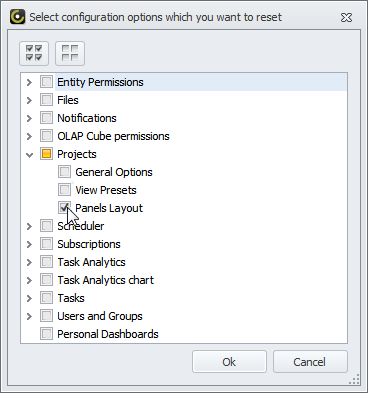 In the Configuration Options dialog box, click the right-pointing arrow to expand the required views, and then select the check boxes next to the items which settings you want to restore. For example, if you select the check box next to Panes Layout, only view panes will be restored to default layout, while the view itself and presets you created will remain with the current settings.