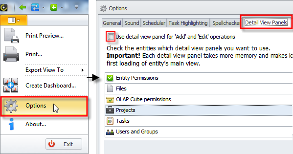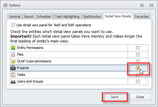 Detail view panes take more memory and make longer the first loading of the main view, so by default only Task detail view pane is displayed among other panes.
