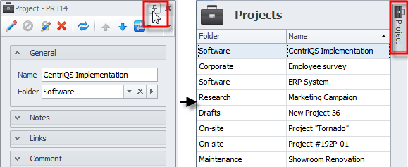 By default detail view pane is pinned, so if you want to unpin the pane, click Pin in the upper-right corner of the pane.