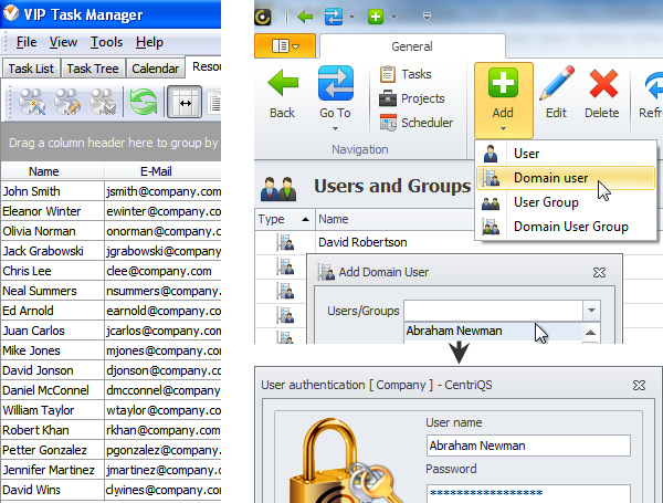 Use Active Directory for adding domain users and providing secure user authentication (screenshot)