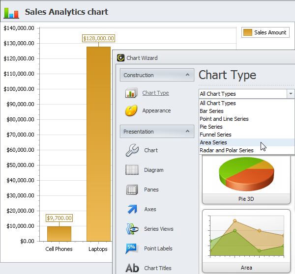 Build any kind of analytical charts to visualize your company key performance indicators (screenshot)