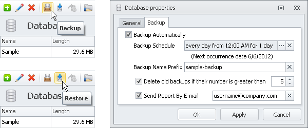 Schedule automatic database backups or do manual database backup/restore easily (screenshot)