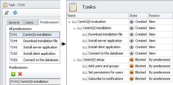 Set 'finish-to-start' dependency to block task status until its predecessors are completed