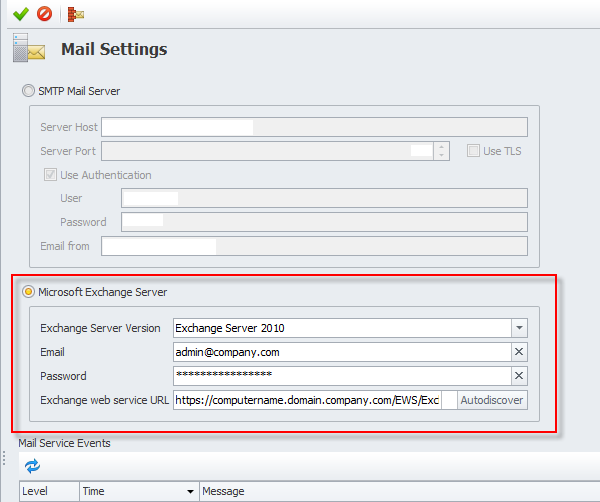 Use MS Exchange server for sending email notifications, reminders and overdue alerts (screenshot)