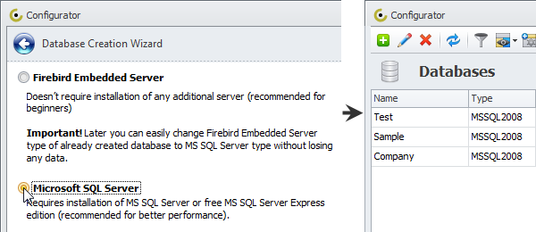 Create MS SQL databases to get all the benefits of MS SQL Server, including Express edition (screenshot)